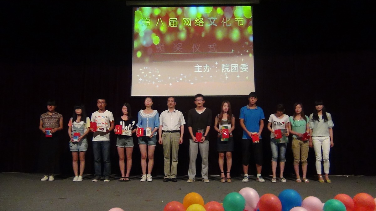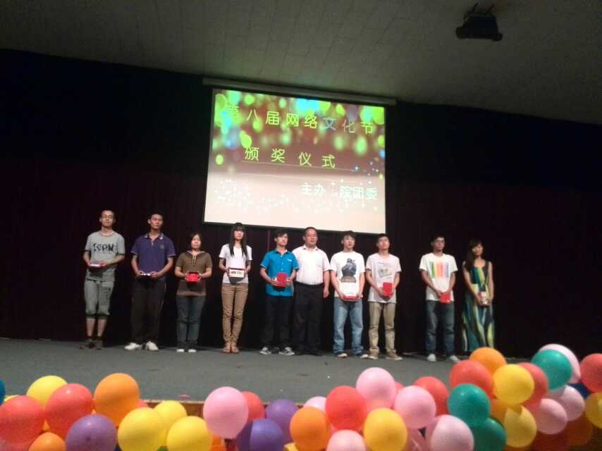 期间,进行了激动人心的颁奖环节。院团委王红晓书记、信工系主任李学桥教授、党总支魏民书记分别为在网络文化节期间动漫比赛、微电影比赛、网络歌曲比赛等六项活动中获奖的同学颁奖并合影留念。
