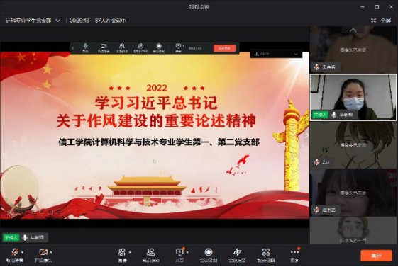 2022年4月7日,太阳成集团tyc33455ccww计算机科学与技术专业学生第一、第二党支部通过线上视频会议召开专题学习会议。支部全体党员、预备党员、积极分子参加会议。会议由计算机科学与技术专业学生第一党支部支部书记牛新翔同志主持。