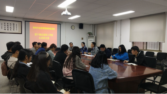 2019年11月12日下午4点30分,信工学院在资讯楼104会议室开展团干走进团支部活动。校团委组织部李松涛老师、校团委社团文体部孔靖雯老师、信工学院行团委书记王崇老师、团委常务副书记袁奉亚老师以及信工学院各社团骨干成员参与了本次会议。