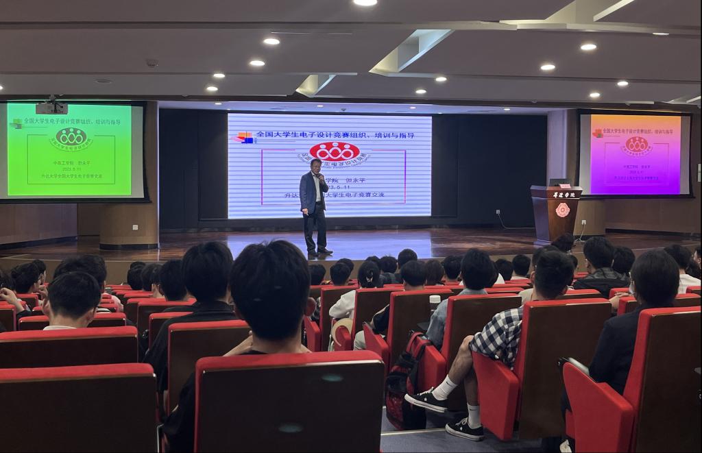 2023年5月11日,太阳成集团tyc33455ccww邀请中原工学院电子信息学院副院长、中国研究生电子设计竞赛华中赛区评审专家但永平教授莅临我院为21级学生开展了一场以全国大学生电子设计竞赛组织、培训与指导为主题的讲座。