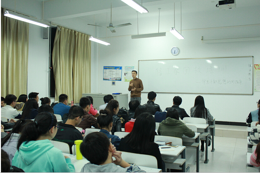 11月4日晚上六点二十,信工系第五次团校培训在道镕楼505隆重召开。本次培训有幸邀请到了院团委组织部部长李松涛老师为大家做“学生干部思想动向指导”的主题培训。信工系团委副书记要璐琦、学生会主席张鹏伟、书记助理程方波、副主席董菲菲、宋月茹、马品及团委学生会各部门部长参加了培训。