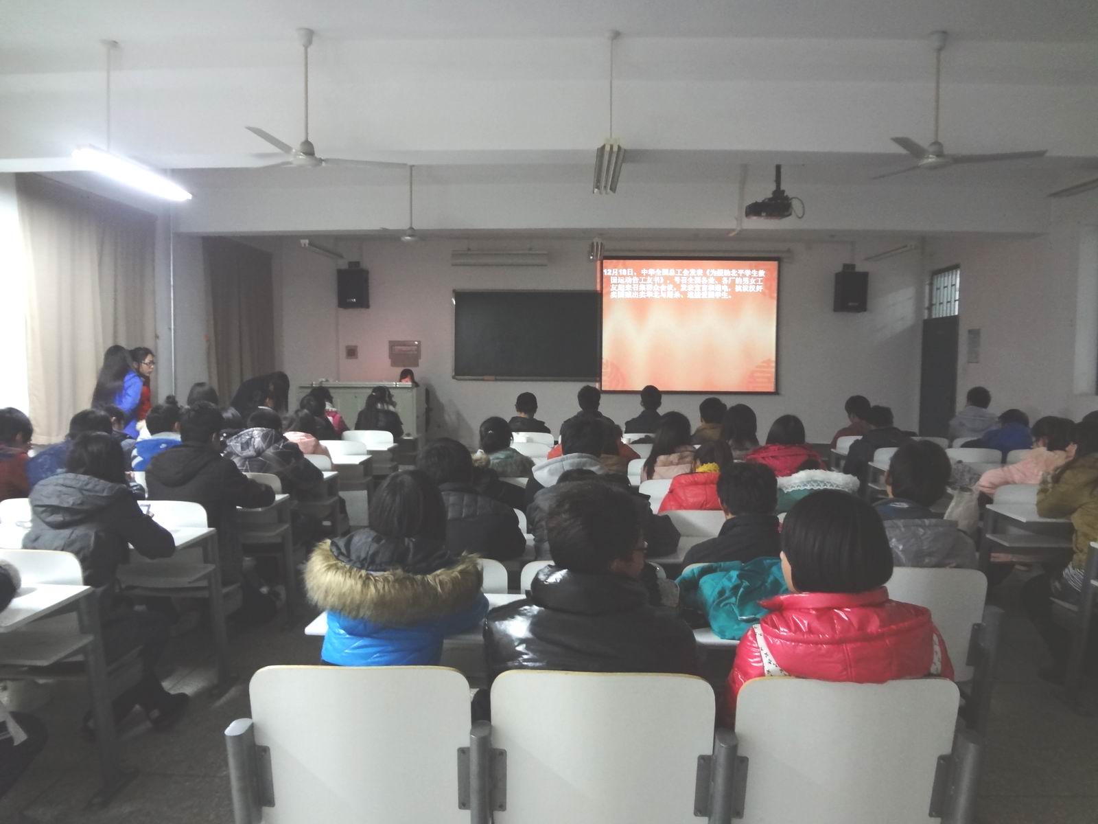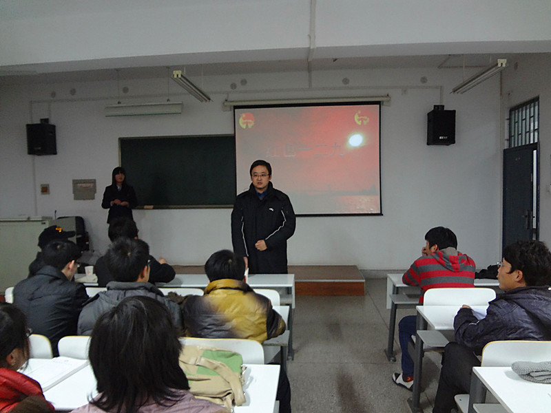 12月13日晚六点,信工系在资讯楼414举办了以纪念“一二 九”运动为主题的红色PPT大赛,信工系团委常务副书记李磊老师,12级辅导员徐志宁老师,学生会主席文瑞田,副主席陈可彬,团委副书记郎志法、孙萍萍以及11级和12级各班学生代表参加了此次活动。