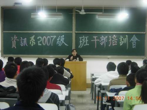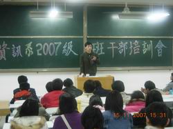 11月15日14:40资讯系2007级团总支在资讯楼106教室举办2007级学生干部培训会,特别邀请了资讯系党总支魏民书记和05级团总支副书记时峥同学参加大会。参加会议的有2007级各班学生干部和团总支学生干部。会议由2007级团总支书记袁保华老师主持。