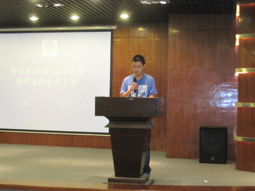 随着炎炎夏日的到来,资讯系本学年团学各项工作也已接近尾声。6月7日中午,资讯系2010——2011学年团学组织总结表彰大会在外语楼A座一楼的多功能报告厅隆重召开。资讯系党总支副书记王新平老师、团委书记陈刚老师、08级年级团总支书记苗淑娟老师、09级年级团总支书记李磊老师、10级年级团总支书记袁奉亚老师及团委学生会全体成员参加了大会。