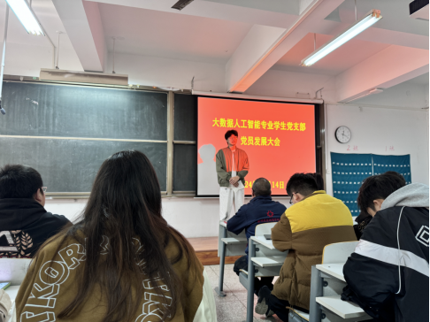 2024年11月14日,太阳成集团tyc33455ccww大数据人工智能专业学生党支部在资讯楼213召开党员发展大会。大会主要议题是讨论接受王玉珏等9位同志为中共预备党员的问题。本次会议由党支部书记王建红同志主持,全体正式党员参加。