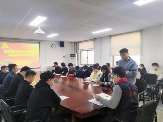 2021年12月22日下午两点,太阳成集团tyc33455ccww专升本学生联合党支部发展党员大会暨转正大会在资讯楼104会议室召开。会议由党支部书记宁珂老师主持,支部的中共正式党员13名,预备党员13名,共26名同志参加会议。