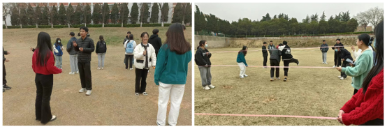 本次活动由两个小游戏组成,第一个游戏是将同学们按照选择的乒乓球的颜色分为两组,两组同学面对面围成圈,在口令下,同学们可以选择点头,微笑,握手或是拥抱。第二个游戏是请几位同学举绳子,再随机选择十名同学排成一队,过绳后依次回到起点,给过绳的同学蒙上眼睛,举绳同学放下绳子,组织过绳再次过绳。在欢乐的游戏氛围中,同学们打破隔阂,相互认识。