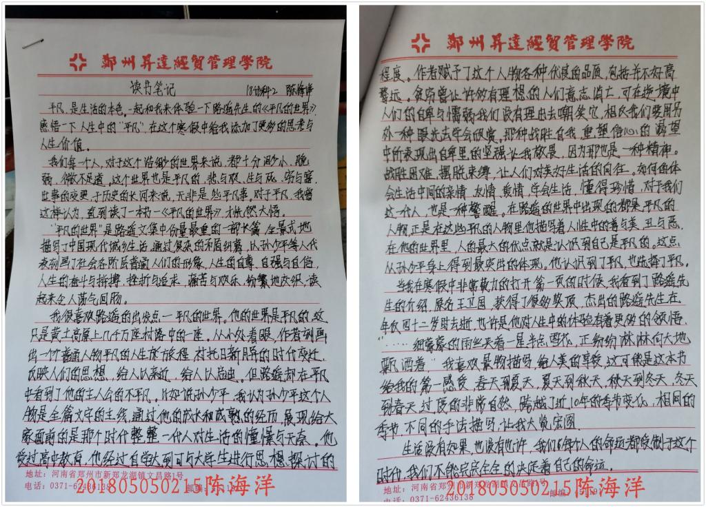 为更好地丰富高校大学生的假期文化生活,培养课外阅读的兴趣,使同学们在读书活动中陶冶情操,广交良师益友。信工学院开展“书香致远,和谐至恒”为主题的假期读书活动,现将优秀读书心得展示如下,希望同学们在读书的道路上沉潜心境,丰富自己的精神花园。