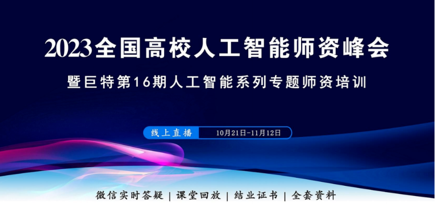 2023年10月21日至2023年11月12日,信工学院积极组织教师参加由巨特公司主办的第16期线上全国高校人工智能师资峰会系列培训。此次培训旨在提高教师的人工智能专业知识和教学水平,推动人工智能技术在高校教学中的广泛应用。本次参加培训的老师有李艳萍、李园园、刘志东和孟明月。