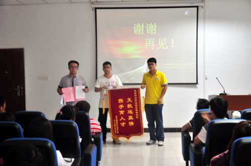 | 9月12日下午,院团委举行了2013年暑期社会实践成果交流会。各系暑期社会实践指导老师、院系暑期社会实践优秀服务团队代表一起参加了此次成果交流会。会议由院团委李松涛老师主持。
