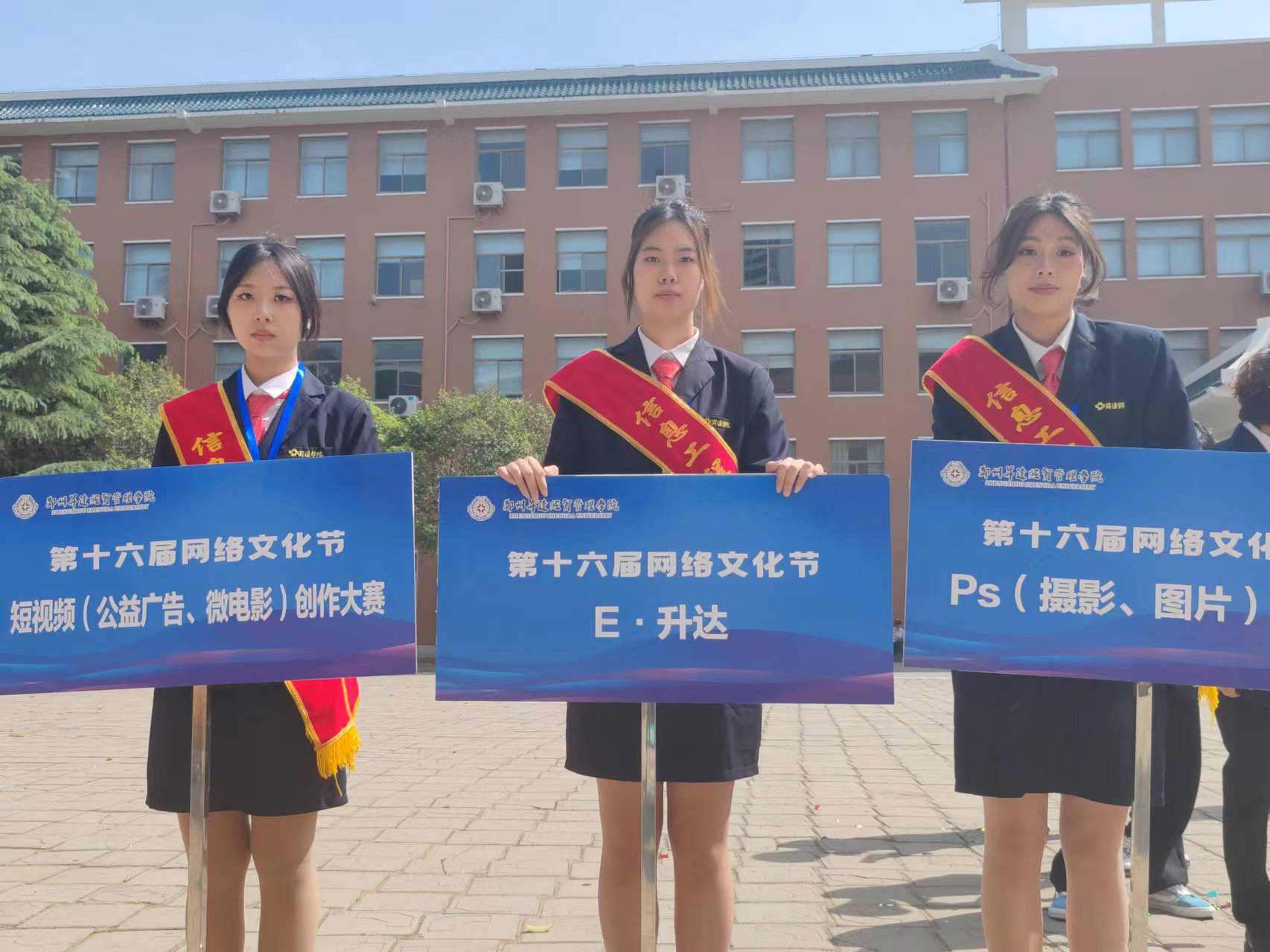 线下以旗帜传递形式展开,共设立16个传递点,16寓意着网络文化节在我校的传承已经抵达第16届!第十六届网络文化节的旗帜从校团委出发,中间经过16组旗手的传递,最终来到资讯楼广场前,交到信工学院手上。