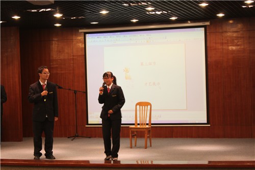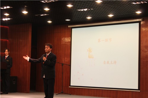 首先,郑玲玲老师为比赛致开场词。她对组织此次比赛的两系团学干部的工作表示肯定和赞扬,并借用弗朗西斯·培根的名言和形象生动的事例指出资讯、文法两系专业的互补性有益于两系学生互相取长补短,共同学习和提高;同时郑老师指出主持人大赛等校园活动在锻炼大学生综合素质方面的积极意义,鼓励大家在搞好学习的基础上积极参加校园活动,最后郑老师对两系今后学生活动的合作提出了新的希望和期许。