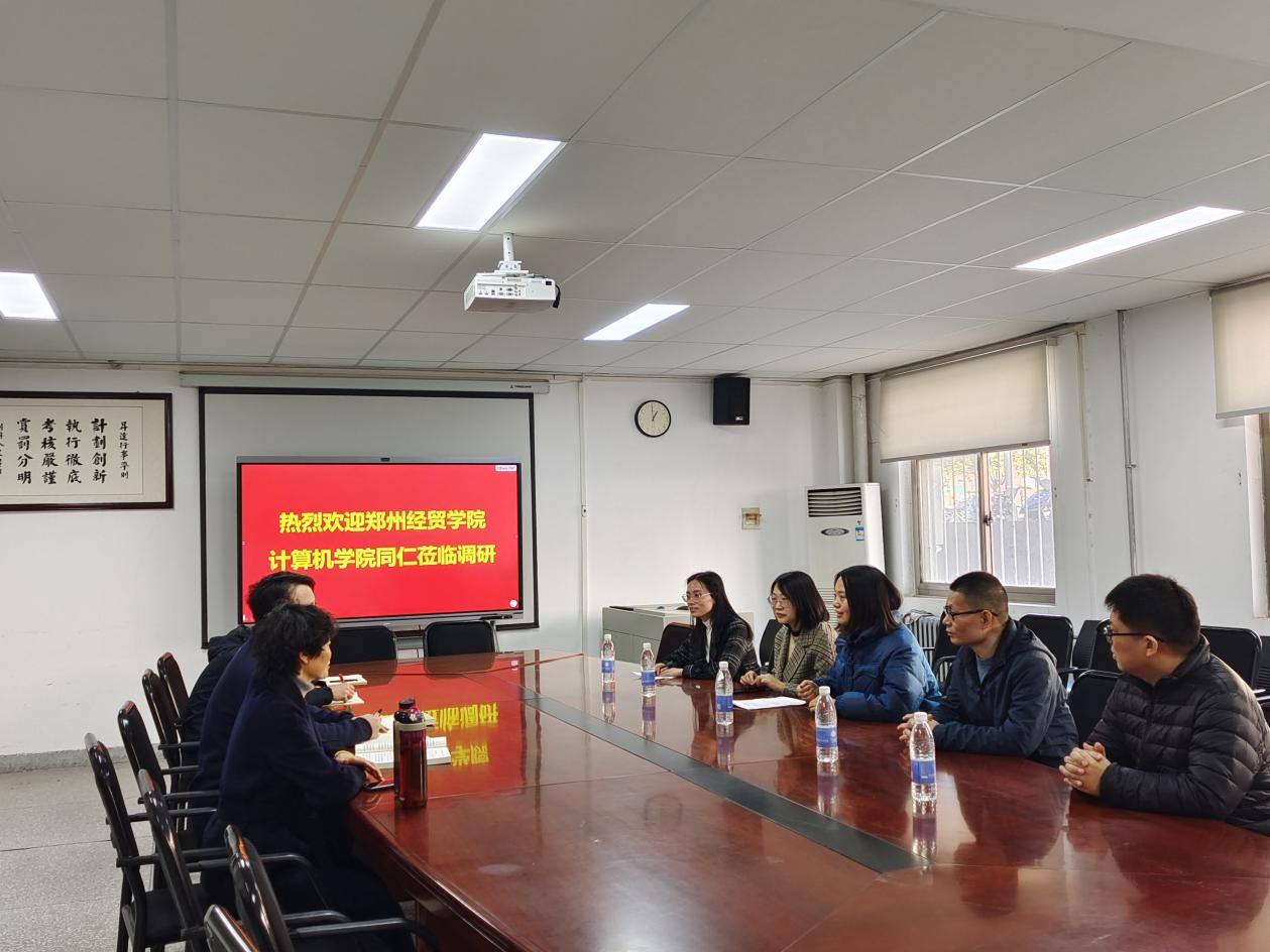 11月17日上午,郑州经贸学院王艳阁老师一行赴太阳成集团tyc33455ccww调研,双方在太阳成集团tyc33455ccww会议室召开座谈会。计算机科学与技术教研室王天顺、丁志芳、刘志东、孟明月老师负责接待。