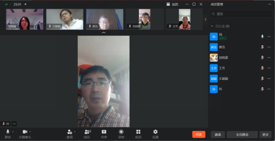 在教研室主任刘敏娟老师在组织下,在钉钉软件进行了线上会议,全体教研室成员参加了会议。首先,刘主任给大家传达了近期的工作情况,然后进行线上和线下教学交流、讨论,每位教师都提出了自己的看法,最后,刘主任对讨论进行了小结。