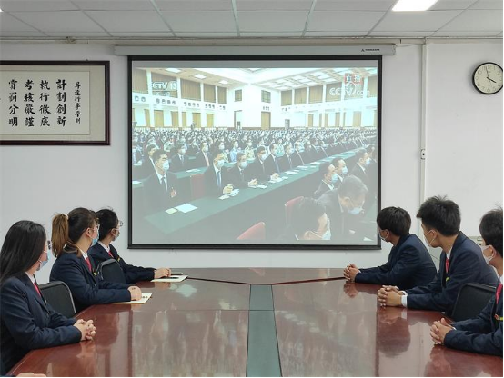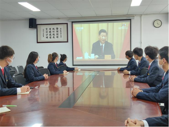 在观看过程中,全体参会人员聚精会神,认真聆听习近平总书记重要讲话,虚心听取总书记的指示建议。跟随总书记的思绪,参会人员回到中国共产主义青年团创立初期的艰难,见证它的成长和辉煌。现场同屏幕一致响起阵阵掌声,共同庆祝这伟大而庄严的时刻。100年来风雨兼程,100年来岁月如歌,中国共产主义青年团始终是中国共产党领导的先进青年的群团组织、是广大青年在实践中学习中国特色社会主义和共产主义的学校、是中国共产党的助手和后备军。大家为中国共青团取得的伟大成就而感到振奋,同时也更加坚定了为共产主义奋斗终身的理想信念。