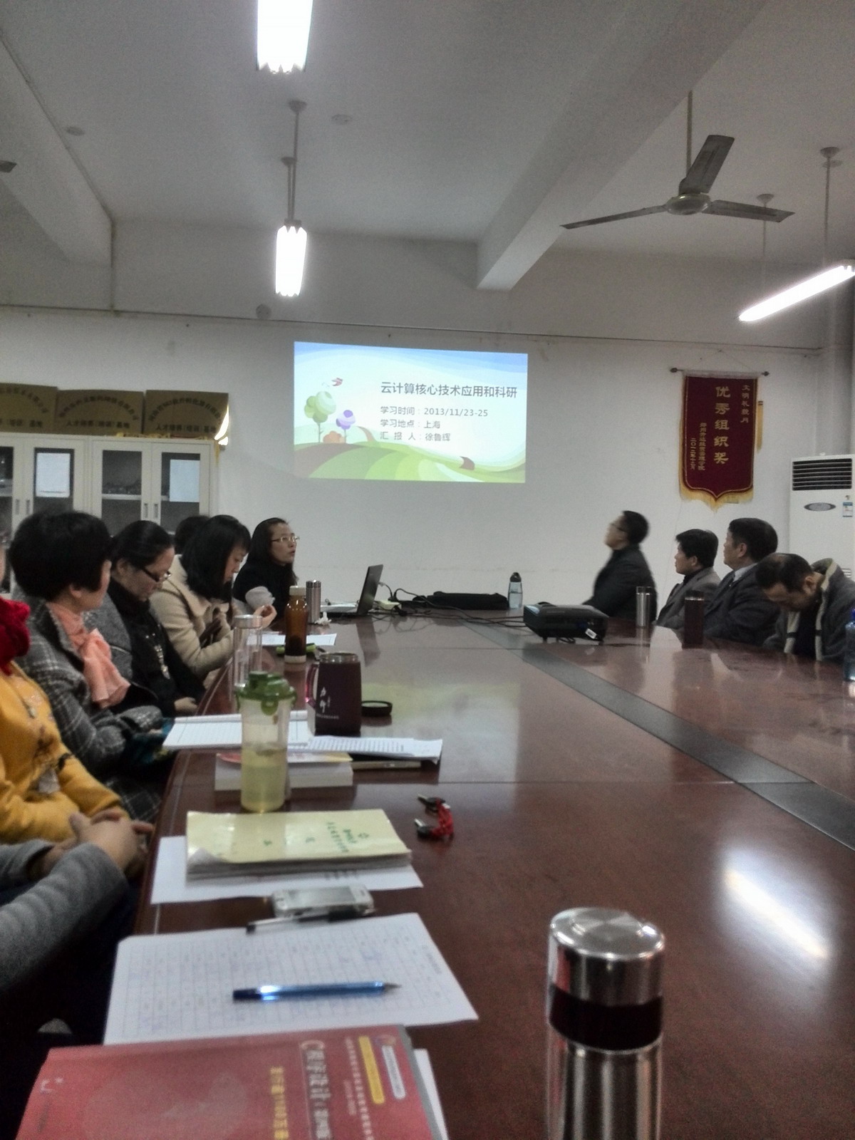 最后,全体教职工就当前的计算机研究热点云计算展开了讨论,并表示通过徐鲁辉老师的汇报,了解了什么是云计算、为什么要搞云计算、云计算会给人类带来生活模式和商业模式的哪些转变等问题。另外大家一致认为,外出参加培训学习既可以提高教师的科研能力,又可以增强教师的教学质量,希望增加指派老师外出学习的机会。