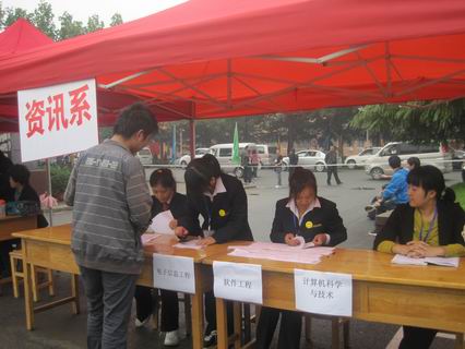 9月15日,持续了多日的连绵秋雨终于停了下来,天空露出了笑脸,阵阵桂香在校园中弥漫。在这特殊的一天里,全院迎来了2011级新生报到的高潮。为此,资讯系团委学生会全体成员着装整齐,分工明确,在我系行政秘书陈刚老师的带领下,早上7:00就在行政楼前、思源会馆西门、体育馆等地设好接待点,随时准备为新生提供细致热情的服务。