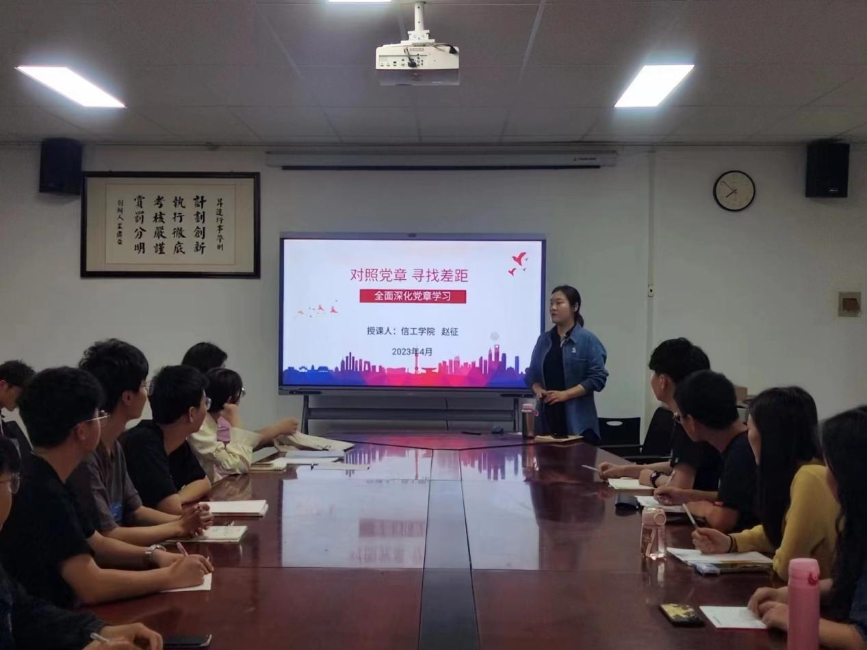 为深入学习新修订的《中国共产党章程》,进一步提高发展对象的思想政治觉悟,4月19日下午,信工学院软件工程专业学生第二党支部书记赵征老师在资讯楼104会议室,为第十七期发展对象培训班学员讲授“对照党章,寻找差距——全面深化党章学习”专题党课。