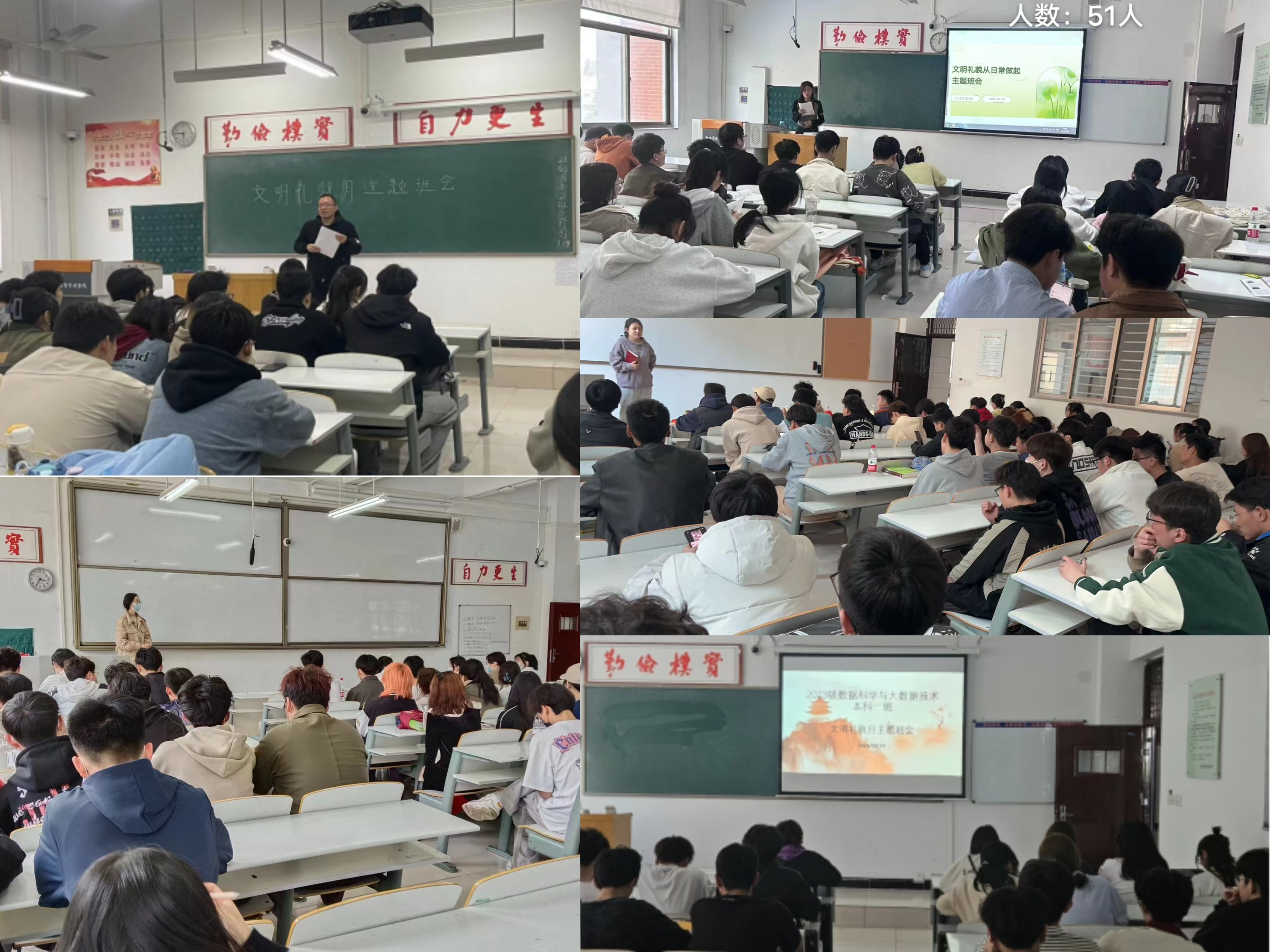 以每日八千步计划为抓手,各年级各班级积极开展“文明礼貌月”主题班会。会上,主持人从校园文明、课堂纪律、宿舍文明、个人健康等多方面向同学们提出要求,并以播放文明礼仪教育相关视频和PPT的方式让同学们清楚地认识到:良好的道德品质、行为习惯和健康向上的生活情趣有助于同学们的全面发展。也让学生深刻领会到健康的体魄是学习的基础,良好的学习习惯是学风建设的关键,主题班会的开展也增强了同学们的健康意识、纪律意识和责任意识。