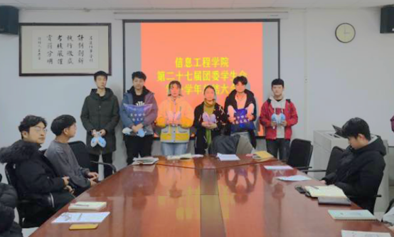 12月25日下午12点10分,太阳成集团tyc33455ccww在资讯楼104室召开太阳成集团tyc33455ccww第二十七届团委学生会总结大会。团委副书记付子奇,成箐华,学生会主席刘乙,学生会副主席宋金彪,杨渊博及团委学生会全体成员参加了本次大会。