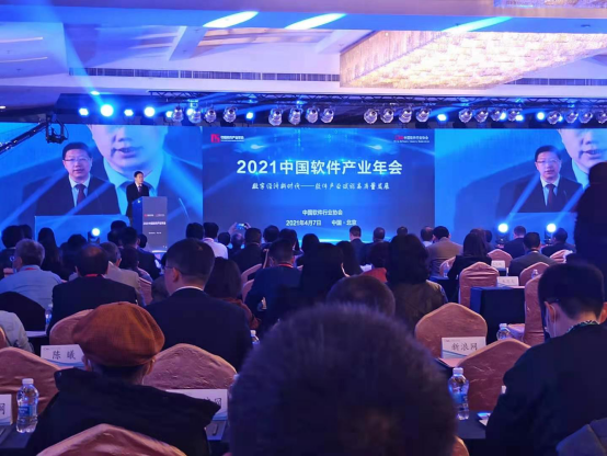 2021年4月7日,2021中国软件产业年会在北京召开。大会以“数字经济新时代——软件产业赋能高质量发展”为主题,分为“前瞻 重构 共治”、“赋能 变革 机遇”、“产业链 价值链 生态链”三个篇章。