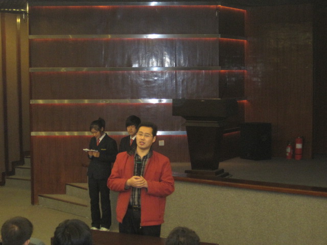 辅导员袁保华老师班会大赛的主题是文明礼貌班会一一“做有志青年,当文明学生”。主题班会被他别出心裁的分成了环环相扣的四个环节。