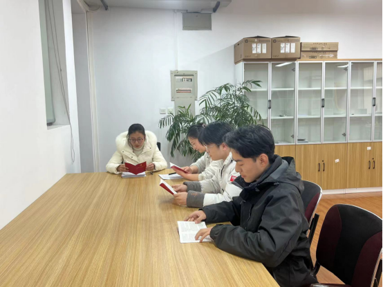 会议开始,由王淼老师带领大家深入学习贯彻党的二十大精神和党章,深刻领悟“两个确立”的决定性意义,增强“四个意识”、坚定“四个自信”、做到“两个维护”。