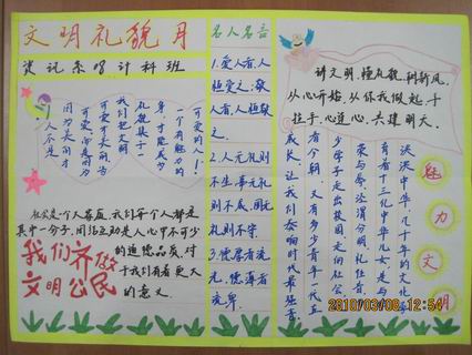 三月是我院的“文明礼貌月”,为了进一步弘扬升达精神,落实文明礼貌月实施方案,资讯系各班积极响应学院号召,制作了一期以“文明礼貌——从身边小事做起”为主题的手抄报。