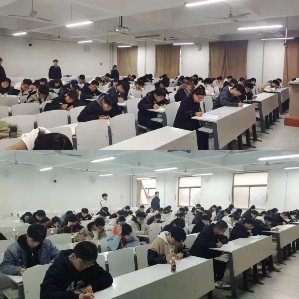 开考前,厉老师和杜老师宣读考场纪律和有关注意事项,重点强调了考场纪律问题,希望考生们积极配合监考人员,严格遵守考场纪律,诚信作答,以认真严谨的态度对待本次考试。考试采取闭卷的形式进行,以学习贯彻习近平新时代中国特色社会主义思想主题教育、党的二十大精神和《中国共产党章程》为重点考察内容。考试过程中,入党积极分子们自觉遵守考试纪律,沉着冷静、细致作答。