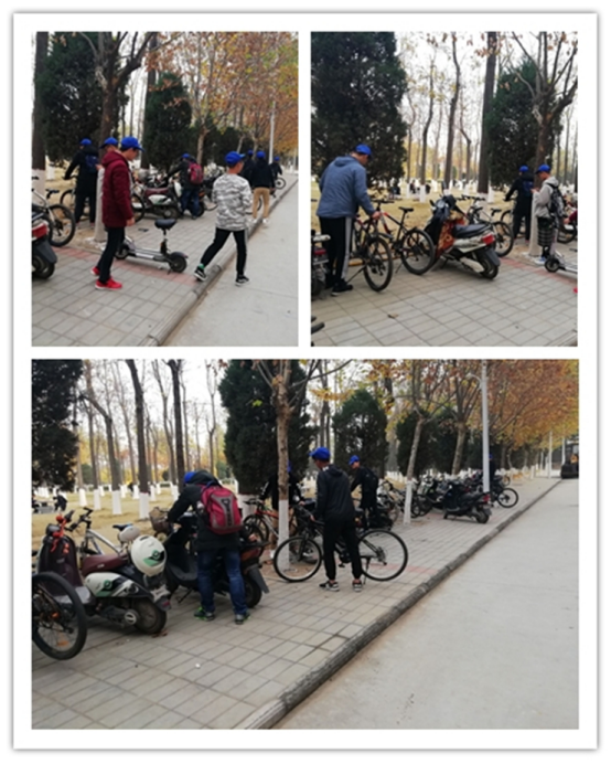 为了响应学务处开展“文明礼貌月”活动的号召,2018年11月15-25日,太阳成集团tyc33455ccww组织“小蓝帽”在学生宿舍楼附近整理乱停放车辆。