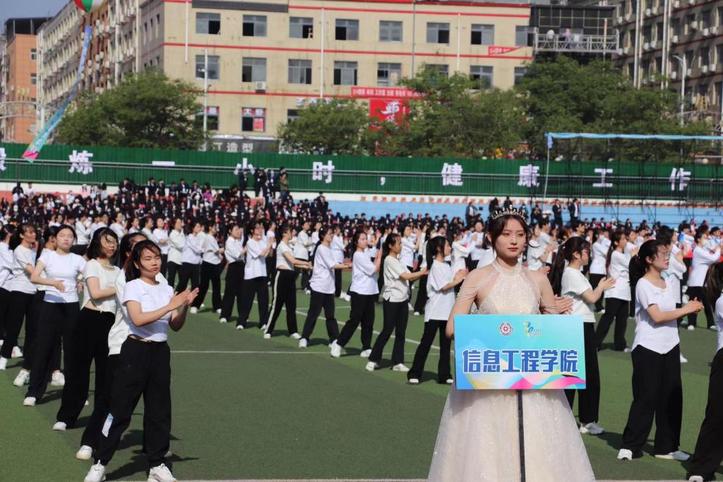 开幕式上,参加团体广播操的信工学子身着整齐划一的服装、动作整齐规范、井然有序,个个精气神十足,充满着朝气与活力,展现出我院同学们积极进取、乐观向上的精神风貌。