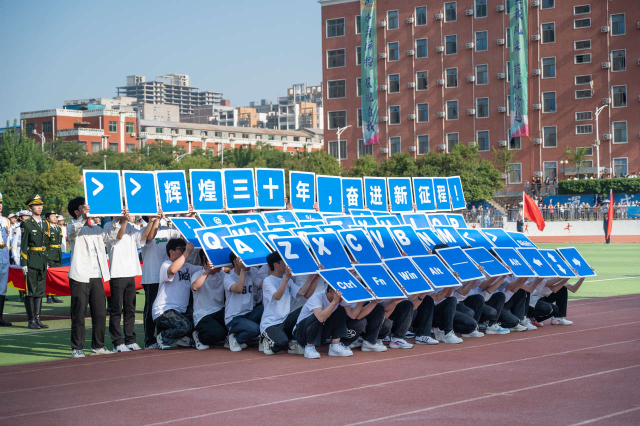 迎着和煦的日光,伴着激昂的歌乐,信工学院仪仗队喊着嘹亮的口号踏向舞台。极具特色的键盘方阵给人独一无二的视觉震撼,展现出信工学子勇于创新的开拓精神。