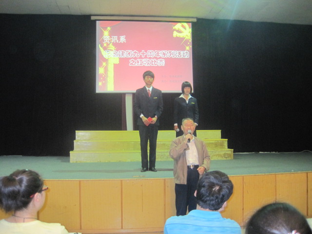 各班同学们身着整齐划一的服装,井然有序、满怀激情地提前来到报告厅。比赛开始,由系主任冷建华教授为同学们讲话。他首先讲述了中国共青团的发展史和光辉历程,希望同学们牢记“五四”运动的精神,发扬资讯系的光荣传统和资讯学子的昂扬斗志,通过唱红歌进一步激励斗志,陶冶情操,催人奋进。最后,他祝愿这次的红歌会能成功举行。