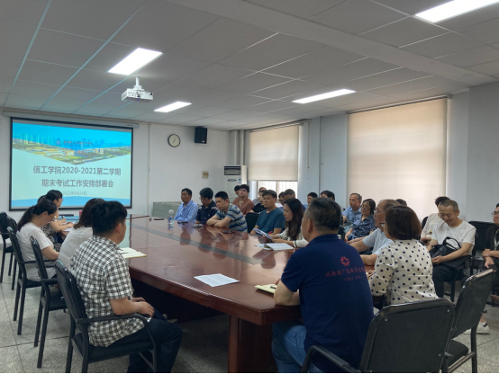 为了保证本学期期末考试的有序进行,6月24日下午,信工学院在学院会议室召开了2020-2021第二学期期末考试工作安排部署会,信工学院党委书记张现水、院长白鑫,及全体教职工参加了会议,会议由教学秘书赵会燕主持。