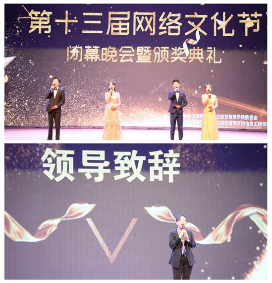 一支精彩火辣的舞蹈拉开了晚会帷幕,激发了全场的气氛。随后,信工学院党总支王新平书记致辞。王新平书记首先对精心组织、大力支持以及积极参与第十三届网络文化节的全体师生表示感谢,向获奖的同学表示热烈的祝贺,同时,她指出本次网络文化节主题鲜明,内容丰富、不仅丰富了校园文化生活,更增强了同学们的创新能力和专业实践能力;王书记希望同学们能够以网络文化节为契机,积极学习网络技能,不断提升文明素养,弘扬传播正能量。