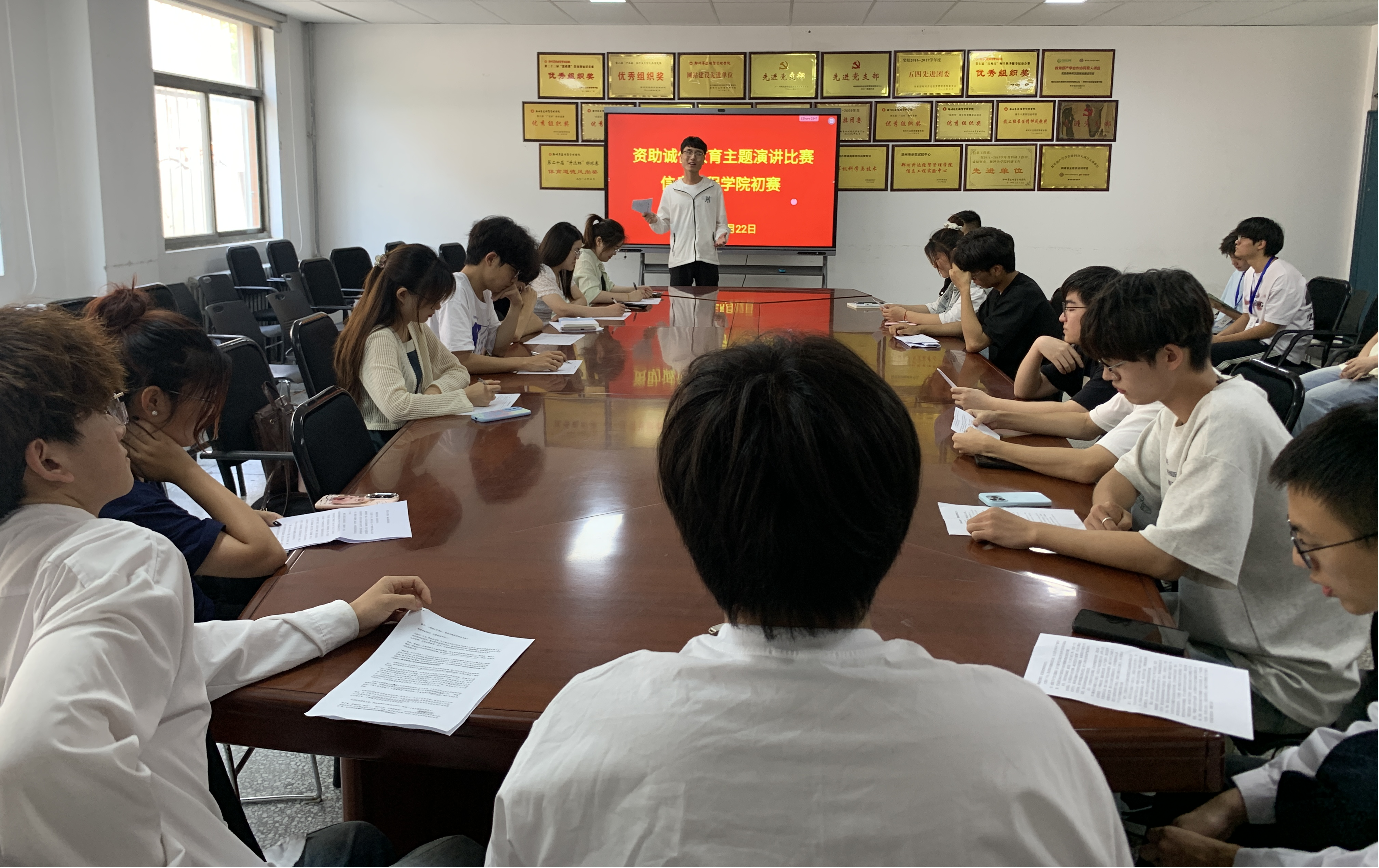 为激励广大学生诚实守信、感恩奉献,5月22日中午,我院于资讯楼104举办了资助政策及诚信教育主题演讲比赛初赛。本次比赛由信工学院23级团总支书记杜自平老师、资助专员胡若男老师、学生代表吕旭萌、吴正盛、杜好钢担任评委。