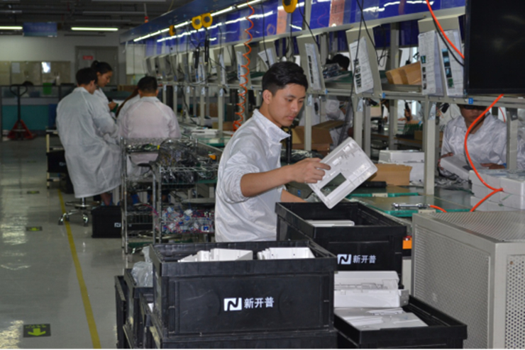 新开普电子股份有限公司2000年成立于郑州高新技术产业开发区,注册资本3.24亿元,现有员工1000余人,并且在全国30余个大、中城市设立了驻外服务机构。公司于2011年7月29日,登陆资本市场,成为中国在一卡通领域的首家上市公司。该公司早期的产品主要是校园一卡通,目前生产的产品已经扩展到电子支付、身份识别、智能水电、射频识别、智能燃气表以及电力载波等众多类型。15通信、15电信、15软工、15计科、15信管和15物联网班的同学在该公司的研发部、供应链和生产链三个部门完成了生产实习。下图同学们在生产链的流水线上工作的情景。