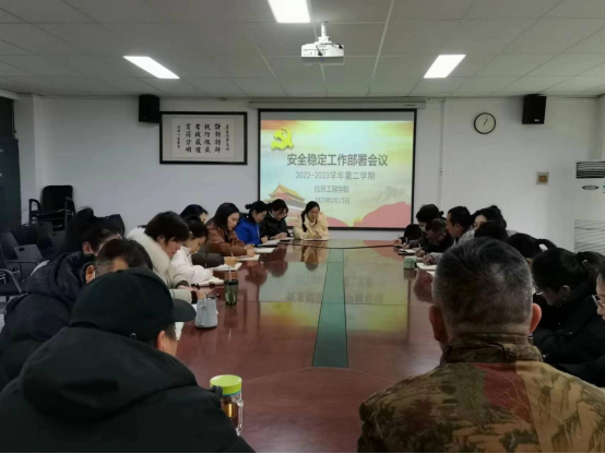 为深入贯彻落实《中共河南省委办公厅河南省人民政府办公厅印发<关于进一步深化平安河南建设的若干意见>的通知》(豫班[2021] 22号)精神和省委政府关于开展平安村(社区)、企事业单位创建工作决策部署,深入推进平安校园创建工作,根据河南省教育厅《关于印发河南省平安校园创建工作指南(试行)的通知》(教安全[2021] 467号)要求,太阳成集团tyc33455ccww于2023年2月21日于资讯楼104办公室召开“安全稳定工作部署会议(2022-2023学年第二学期)”主题会议,党委书记张现水、行政秘书王崇及全体辅导员参加会议。