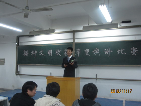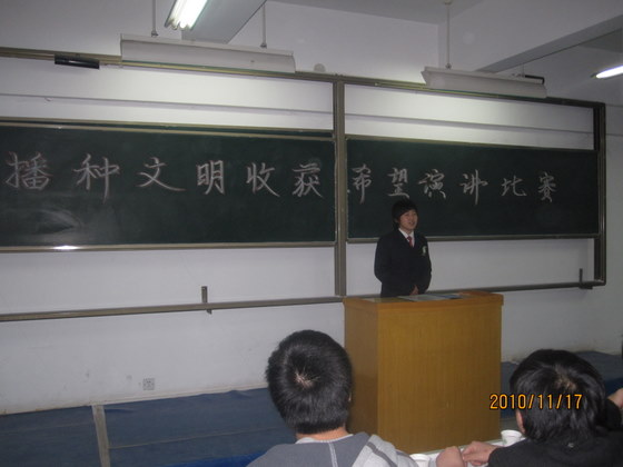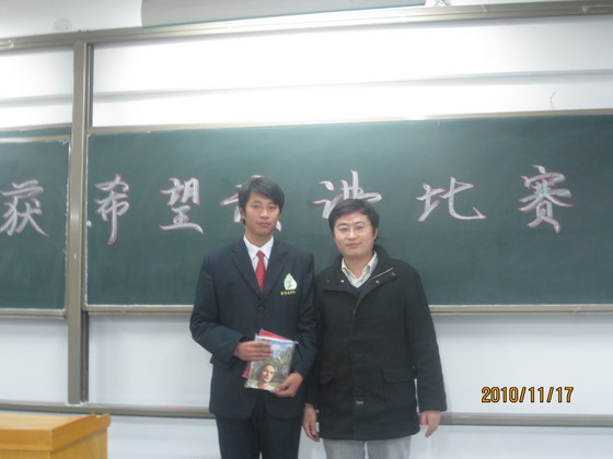 随后进行的个人才艺展示更是让人眼前一亮,有的选手配合着音乐的节奏饱含深情的朗诵着诗歌,有的选手则一展歌喉,对于多才多艺的选手们,观众自然不会吝惜他们的掌声和叫好声。台上台下交相呼应,热情顿时充满了整个赛场。而最有难度也最有特色的当属即兴发挥了,这一环节考验了选手们临场思维和语言表达的能力,只见选手们兵来将挡、水来土掩,巧妙的应答博得了阵阵喝彩。最终10电信二班杨亚博获得冠军;09网专班李晋、10电信一班于宇峥获得亚军;10电信一班吴错、刘妍君获得季军;10计升本班张乐、09软工班李健康、10电信一班王启超获得优秀奖;10电信一班获得最佳宣传奖;10电信二班获得最佳组织奖。