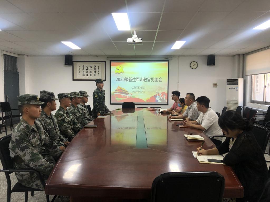 2020年9月17日下午两点半,信工学院在资讯楼104召开了20级新生军训教官见面会。出席本次见面会的有信工学院党总支书记张现水、行政秘书王崇、全体20级辅导员以及7名新生军训教官。会议由行政秘书王崇主持。