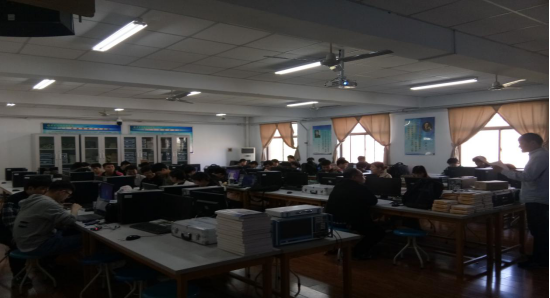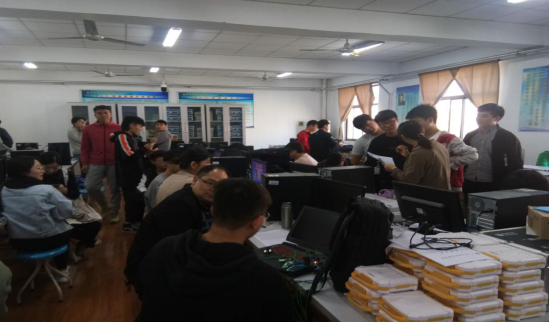 2019年10月31日下午1点,信工学院物联网教研室在教研室主任乔木老师的带领下,李鑫老师、张永红老师、张鸿老师和2016级物联网工程本科1班35名(总人数56-考研人数21)同学一起汇聚资讯楼505室,共同鉴赏同学们这4个月来的辛勤成果。