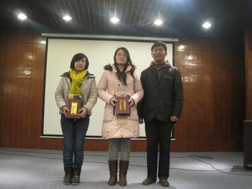 比赛结束,由张娟老师对选手们的作品做了点评。张老师着重点出了部分选手作品中的亮点,并希望大家能以此次比赛为契机,掌握娴熟的动手计算机实践能力,为以后的工作和学习提供便利。最终,范文梅凭借《自我介绍之追忆》的精彩展示夺得一等奖,程雨的《我的偶像——王菲》、李越美的《我的偶像——周杰伦》获得二等奖,张泽豪、 彭草源、王新建三位选手获得了三等奖,何耀斌等七位选手获得了本次比赛的优秀奖。院团委石守金老师、资讯系团委书记陈刚老师和张娟老师分别为他们颁奖并合影留念。