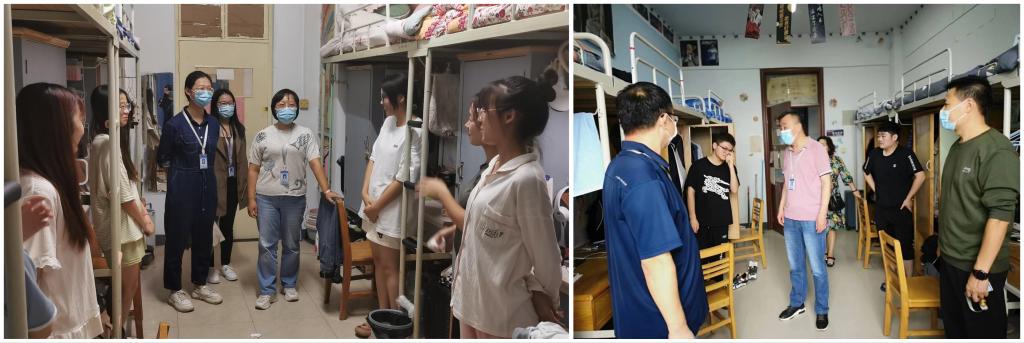 在宿舍走访过程中,白鑫院长希望同学们在假期期间多参加有意义的活动,丰富校园生活。校内校外时刻注意疫情防护不松懈,遵守疫情防控要求,同时建议同学们劳逸结合,合理安排假期。张现水书记建议同学们在国庆假期做好安全防护,出行在外,避免人群密集处聚集,保持健康积极的生活作风,加强锻炼,保持愉快的心情和健康的体魄,度过有意义的国庆假期。