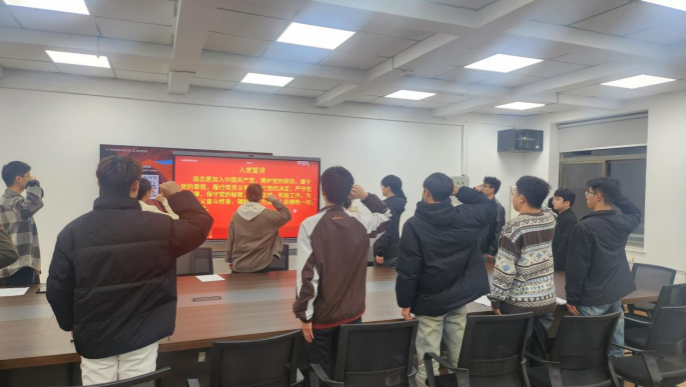 最后,由副书记周媛媛同志带领全体党员宣读入党誓词。党支部书记马森琦同志作总结讲话,希望八名新发展的预备党员要正视自身的缺点与不足,在后续的学习和生活中务必戒骄戒躁,紧跟党的步伐,加强理论知识的学习,取得更大的进步,真正在思想上入党,争做模范优秀党员。