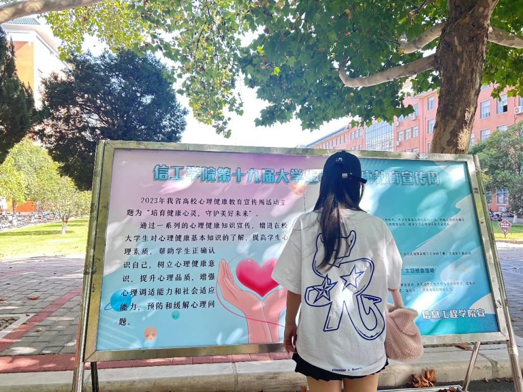 为切实增强大学生的心理健康意识,培养良好的心理素质,养成正确的心理健康观念,构建和谐校园。在学校心理健康教育中心的指导和学院团委的协助下,信工学院心理协会于10月18日——10月28日期间,在我校开展信工学院第十九届心理健康教育宣传周系列活动。
