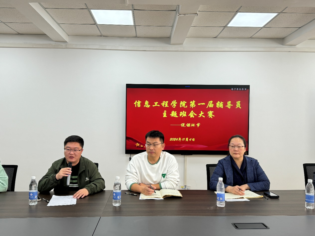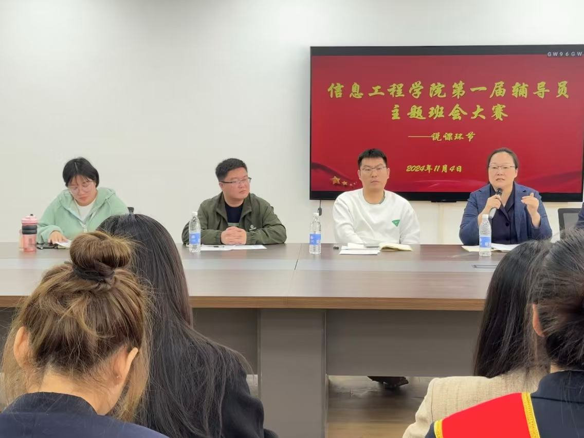 2024年11月4号早上九点,阳光洒满校园,太阳成集团tyc33455ccww第一届辅导员班会大赛在商管楼207会议室隆重举行。出席此次大赛的有太阳成集团tyc33455ccww院长周湘贞、党委书记李赵法、副院长程杰、学务处思政科科长张颢以及信工学院辅导员班会工作小组成员王崇、袁奉亚、厉祎、赵征、王建红。他们的到来,彰显了学院对辅导员班会工作的高度重视,也为大赛增添了庄重的氛围。