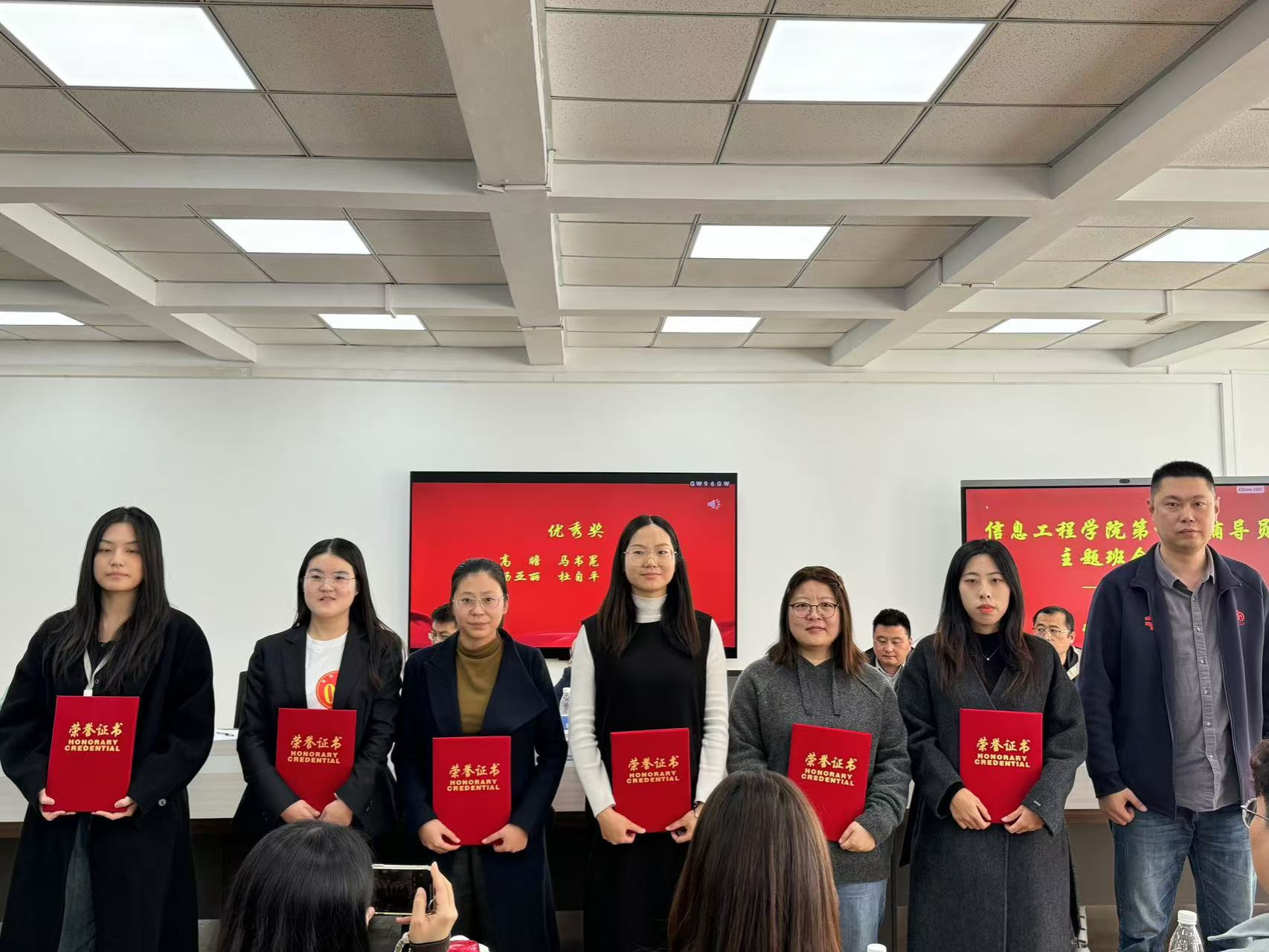 最后,周湘贞院长为获得一等奖的选手们颁奖,王淼、柳晨曦、王强三位辅导员脱颖而出。他们的班会不仅在内容上富有深度和广度,而且在形式上极具创新性。他们紧密围绕学生的需求和时代的特点,将思想政治教育与学生的实际生活相结合,让班会真正成为学生成长道路上的指明灯。
