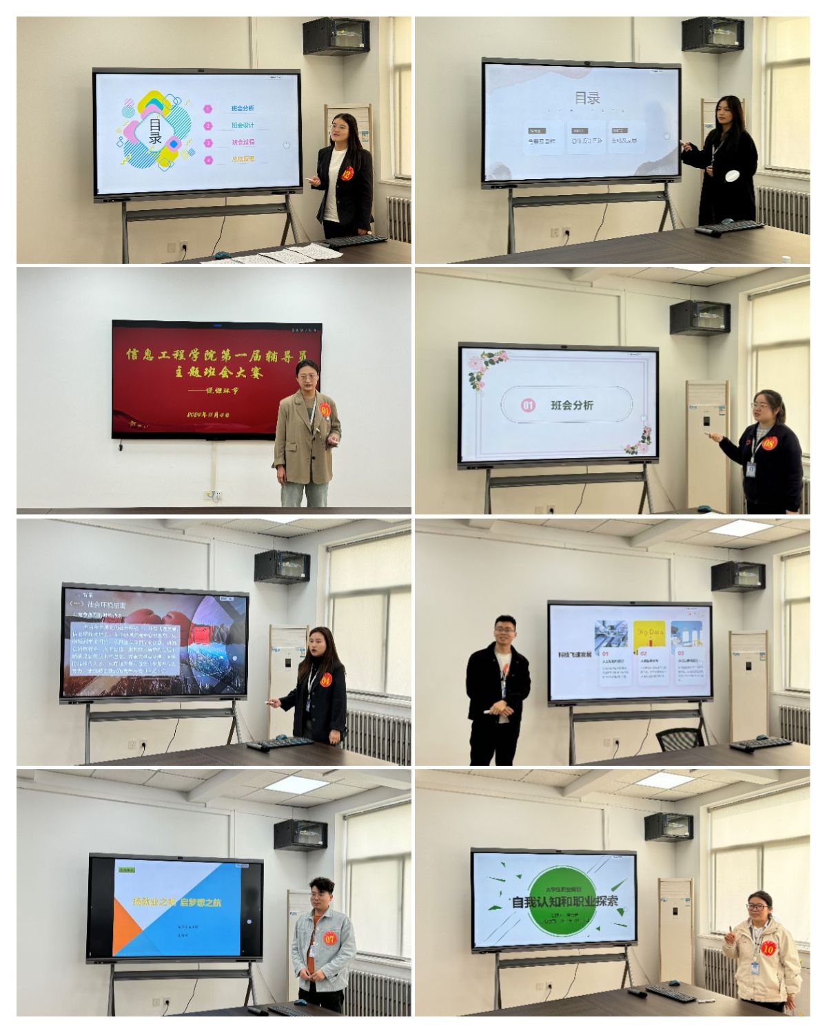 比赛现场气氛热烈,各位辅导员准备充分。他们围绕不同的主题,通过精彩的设计和讲解,向在场观众呈现了一场富有内涵和教育意义的班会。有的辅导员聚焦学生心理健康,引导学生正确面对学习和生活中的压力;有的则以职业规划为切入点,帮助学生明晰未来发展方向;还有的强调团队协作,鼓励学生积极融入集体。