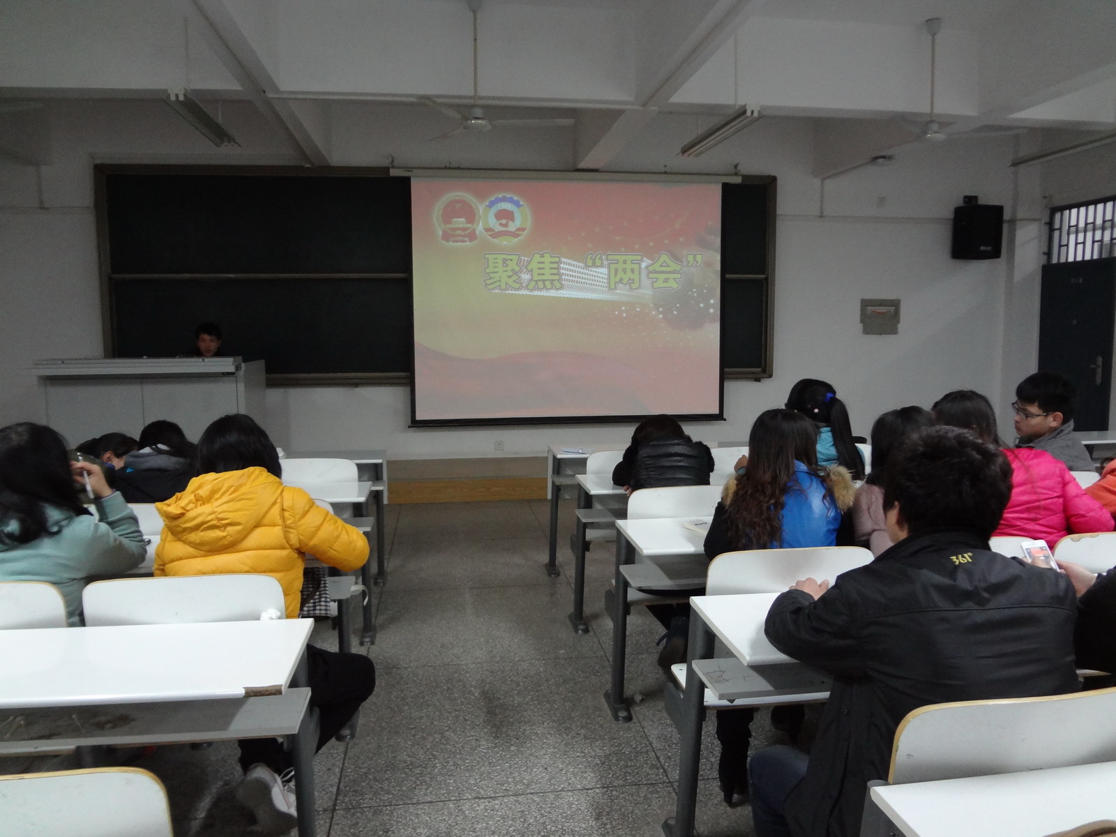 首先政论部部长梁书举同学介绍了此次活动的主要目的和流程。随后,大家一起观看了精心收集整理的有关两会热点问题视频资料,了解了今年两会的热点问题,例如一些教育问题、住房问题、医疗问题、收入分配等一些与人们生活息息相关的问题。对于那些热点问题,聆听了一些专家与学者的观点,随后,同学们也对此展开了热烈的讨论,现场气氛热烈活跃。
