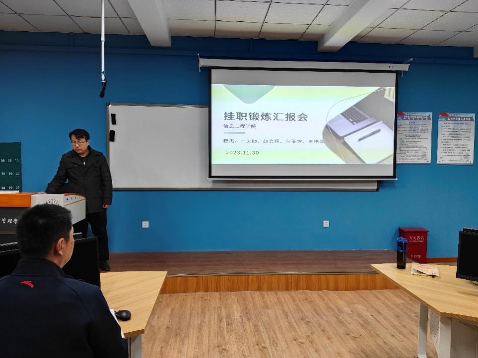 为进一步加强信息工程学院师资队伍建设,促进校企融合,建设双师双能型教师队伍,提高教学质量,真正了解企业对人才的实际需求,程杰、王天顺、付丽方、李艳萍等几位教师在学院领导和相关部门的支持下到企业开展挂职锻炼并取得了丰硕的成果。并于11月30日在资讯楼115教室召开挂职锻炼汇报会,就挂职期间的收获与参会老师分享。